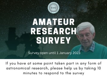 But if RASNZ is going to be effective in supporting amateur research in the future, we have to update what we know about who is research active and what their needs are. We have developed a survey for New Zealand amateur astronomers who participate in research, so we can have better information about what they do and what they need from us. If you have at some point taken part in any form of astronomical research, please help us by taking 10 minutes to respond to the survey and tell us a bit about what you do, and what support you look for. If you know of somebody who takes part in astronomical research who may not have received this notice, please pass them the link to the survey, so they can also respond. The survey will be open until 1 January 2023, and we expect to report results in February.